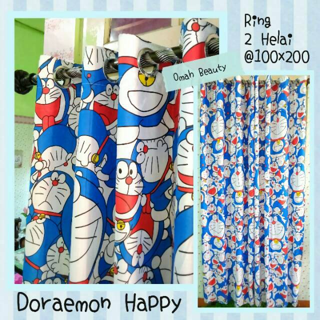Gorden Tirai Doraemon Happy Biru Lebar 100cm Ring Smokering Kartun | Download Gambar